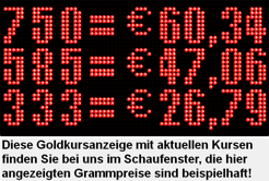 Die Goldkursanzeige wurde deshalb installiert, damit jeder, sei er unverbindlich oder unmittelbar am Verkauf interessiert, sich über die
